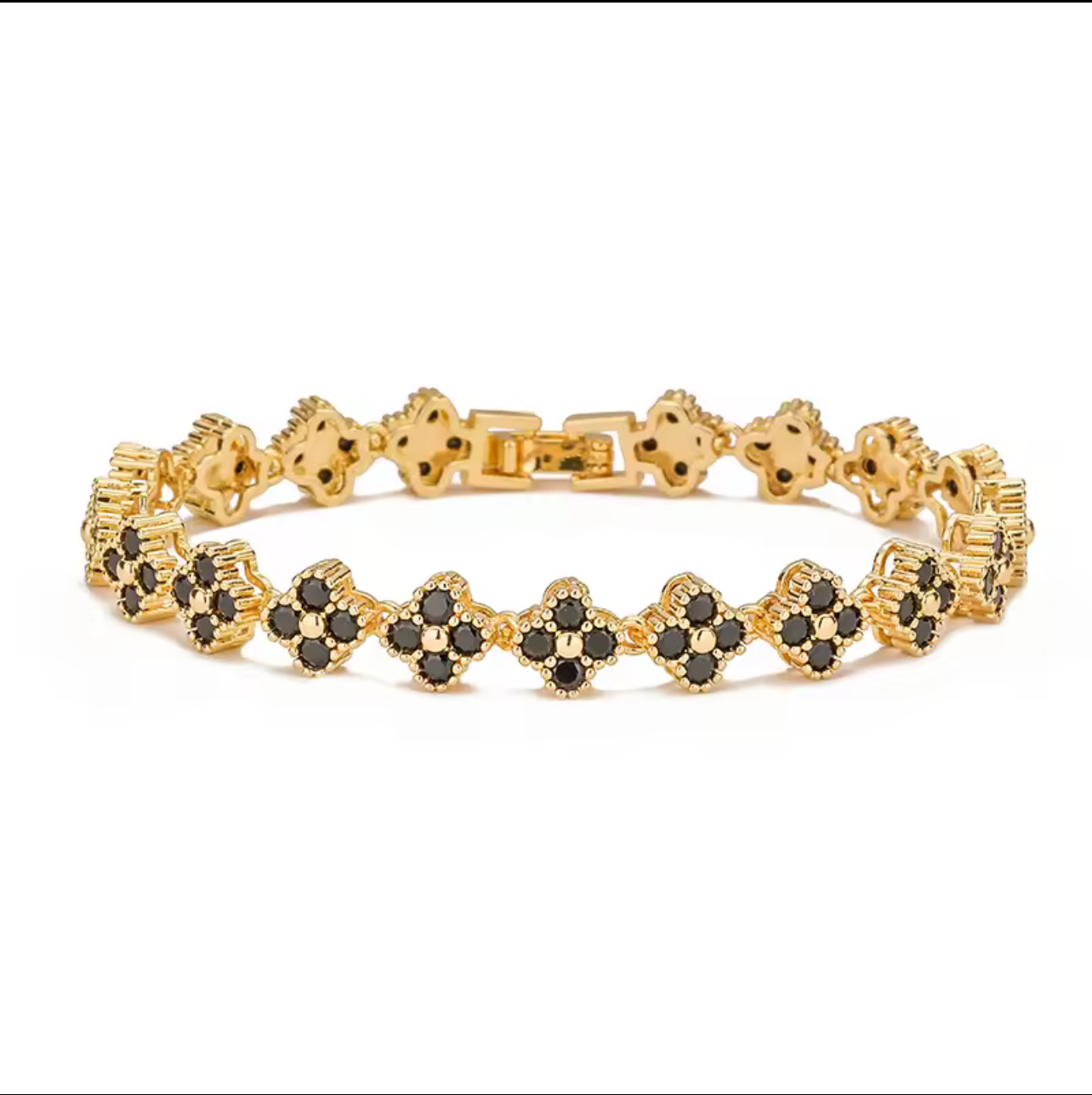 Laissez briller votre poignet avec le bracelet Aria. Conçu en finition dorée éclatante, il est orné de multiples strass argentés qui scintillent tels des éclats d’étoiles. Élégant et sophistiqué, ce bijou apporte une touche de glamour à vos tenues, parfait pour illuminer vos soirées comme vos looks du quotidien