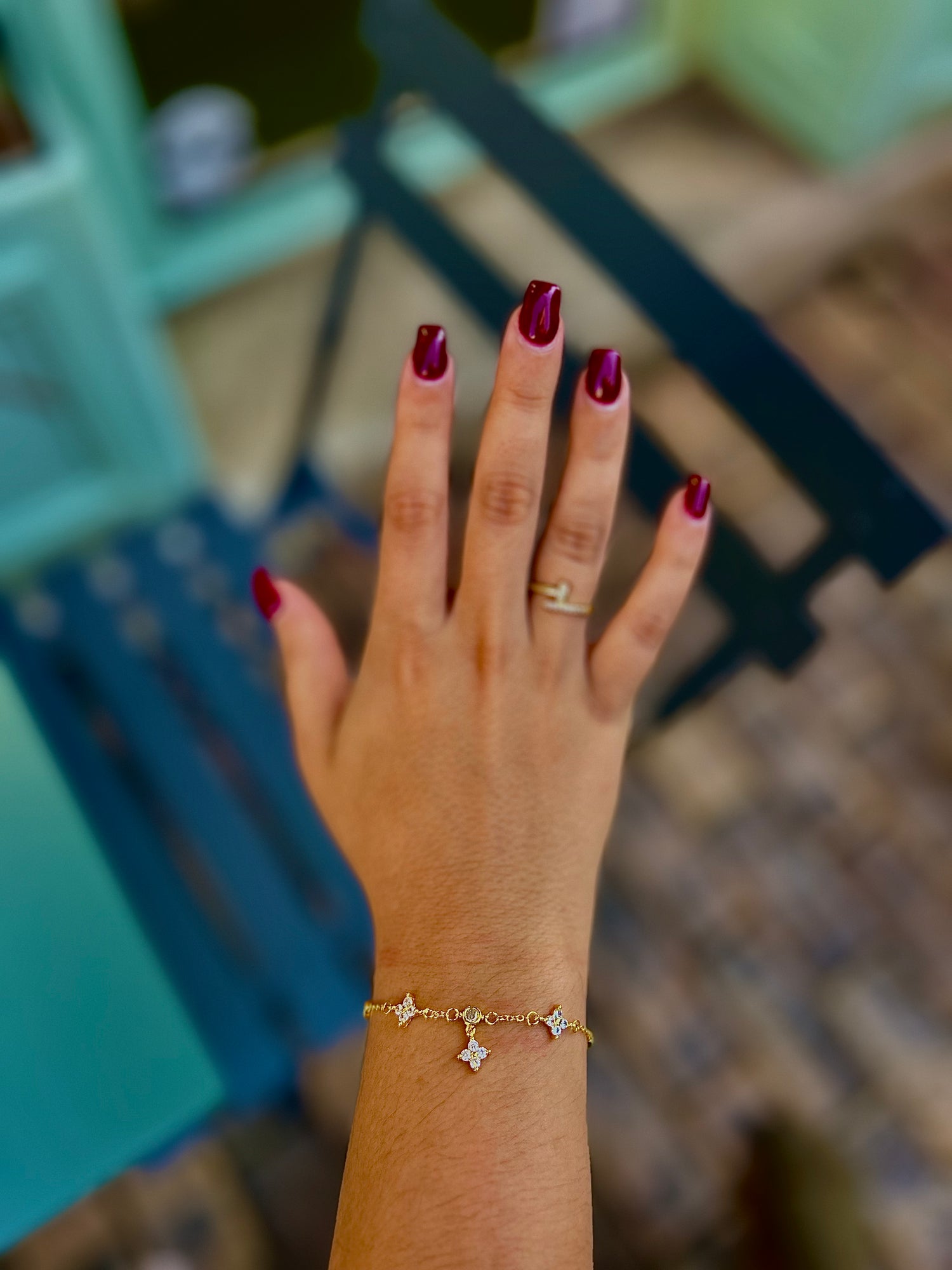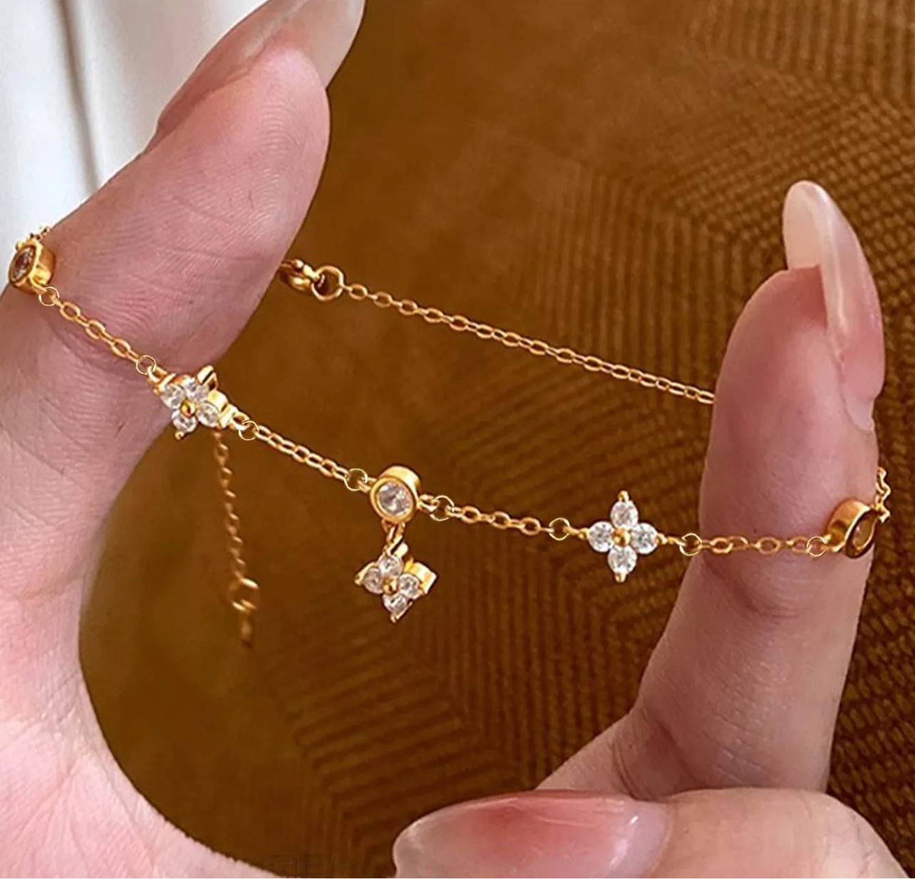 Bracelet Lilas – Doré, Trèfle et Élégance